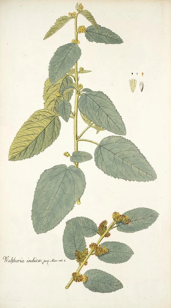 Nikolaus Joseph Freiherr von Jacquin, en ikonisk figur fra det 18. århundrede, er anerkendt for sine bidrag til botanisk illustration. Som botaniker og kunstner formåede han at forene videnskab og æstetik, og hylde skønheden i planter gennem sine værker. Påvirket af de botaniske opdagelser i sin tid, rejste Jacquin verden rundt, samlede eksemplarer og illustrerede dem med bemærkelsesværdig præcision. Hans værker, herunder Waltheria indica, er blevet referencer inden for feltet og vidner om vigtigheden af botanisk kunst i videnskaben.