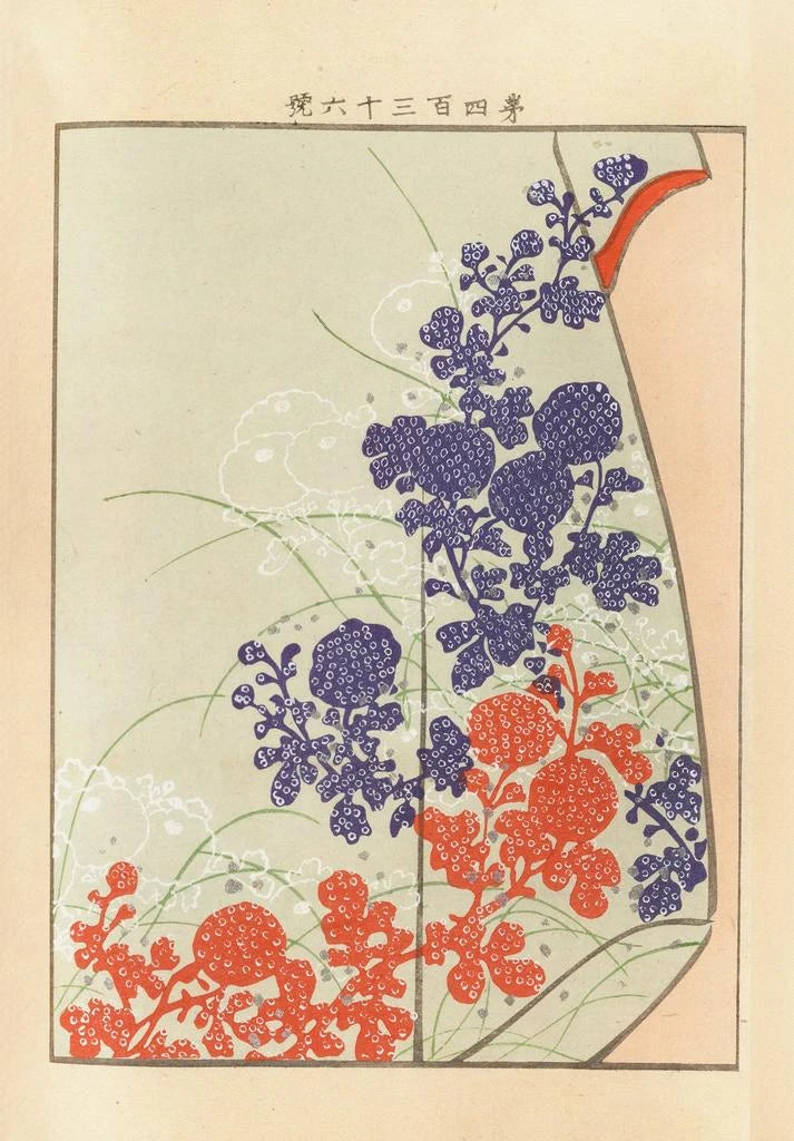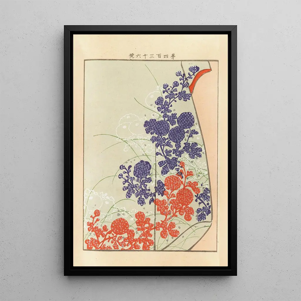 Kunsttrykket Yachigusa v 15 Pl16 af Seiko Ueno fremkalder en delikat harmoni mellem tradition og modernitet. De livlige nuancer af blå og rød væves yndefuldt sammen og skaber en atmosfære, der både er beroligende og dynamisk. Teknikken med ukiyo-e, karakteristisk for japansk kunst, fremhæves gennem flydende linjer og raffinerede mønstre. Hvert detalje synes at fortælle en historie og inviterer betragteren til at dykke ned i en verden, hvor natur og kunst mødes. Dette værk, med sin æstetik, transporterer os til en verden af ro og eftertanke.